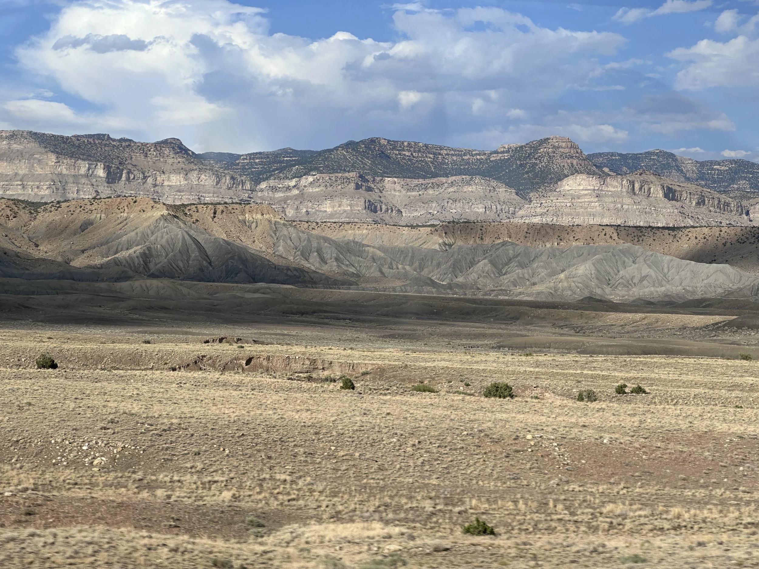 We have been on the road since 11:10, but not all of that was rolling since we had to wait in line at the cutoff and we stopped in Grand Junction to buy gas and get lunch. But we are making really good time. We should be to our destination by 9:30 or so. Another day on the road and we are now just really good at it. Pros. We’ve got our roadtrip playlist going and Damien is driving. He likes driving, and I like when he drives. He’s calm and quietly mesmerized by the view.
