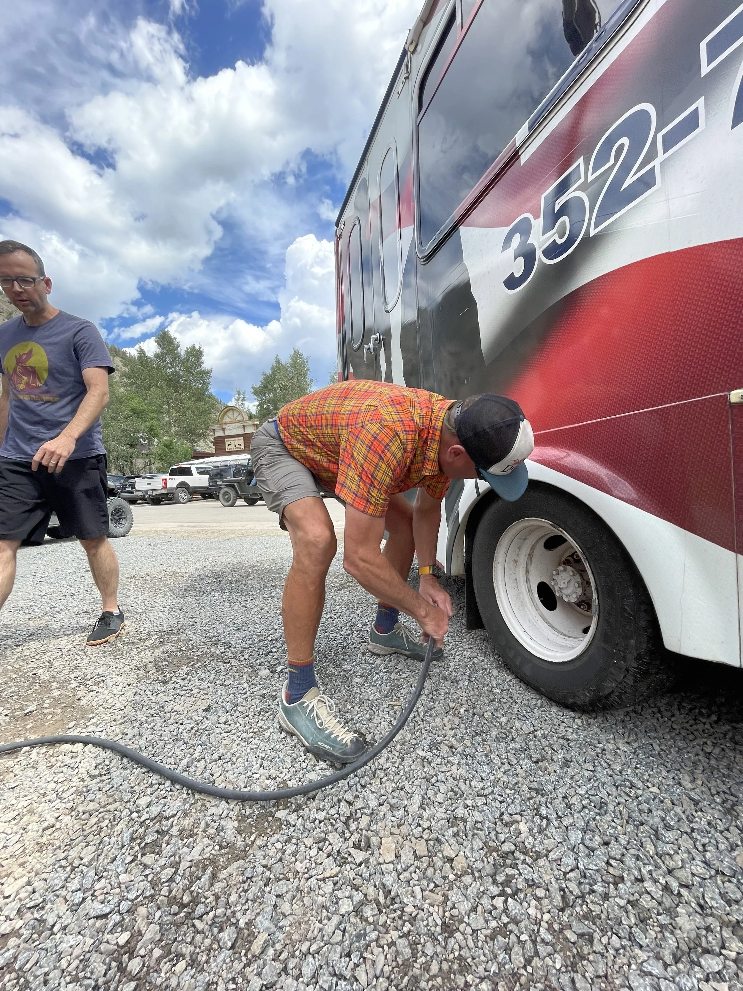 We made it to the cutoff road. And then we waited in a big line of logging trucks.